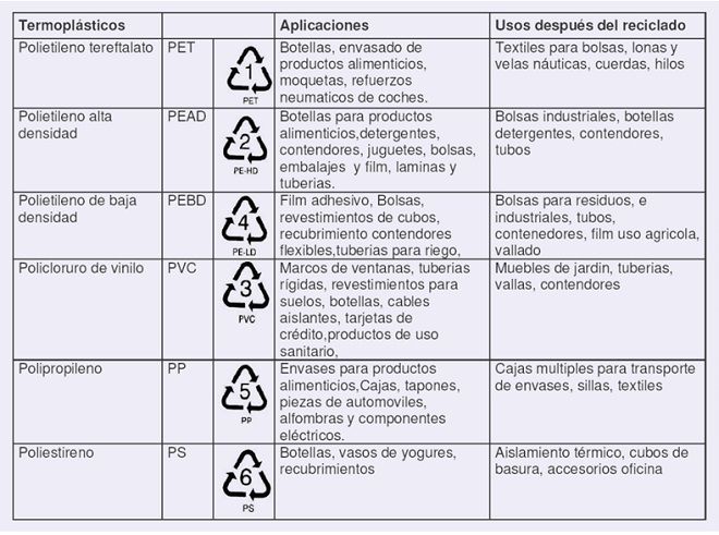 Para facilitar la recogida y clasificación de los plásticos se estableció un código numérico que indicase sin errores de qué tipo de plástico se trataba.