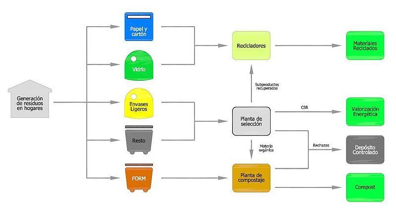 Ya vimos en este otro post la manera de cómo se hace una primera separación y selección en origen, orientada sobre todo a los residuos urbanos.