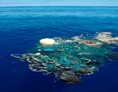 Las redes de plástico, perdidas o abandonadas por los barcos pesqueros son conocidas como «redes fantasmas«, y se enredan en multitud de especies marinas (como peces, delfines, tortugas, tiburones, aves,…) provocando laceraciones, heridas, restringen su movimiento impidiendo que puedan alimentarse o respirar.
